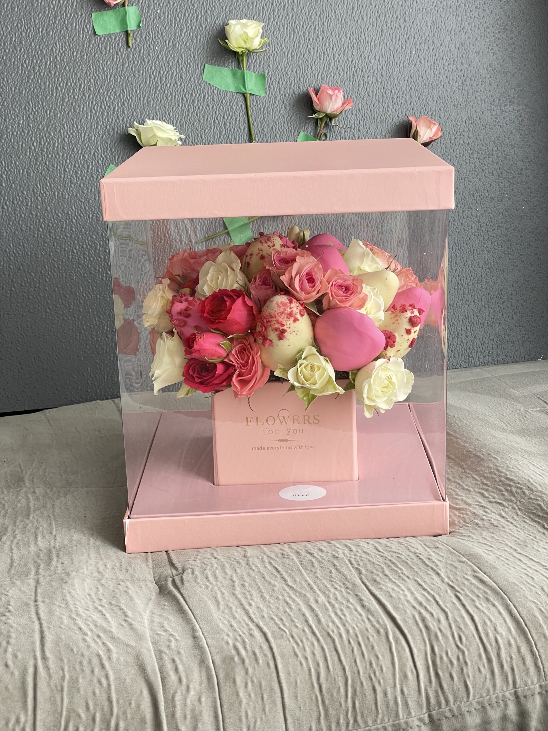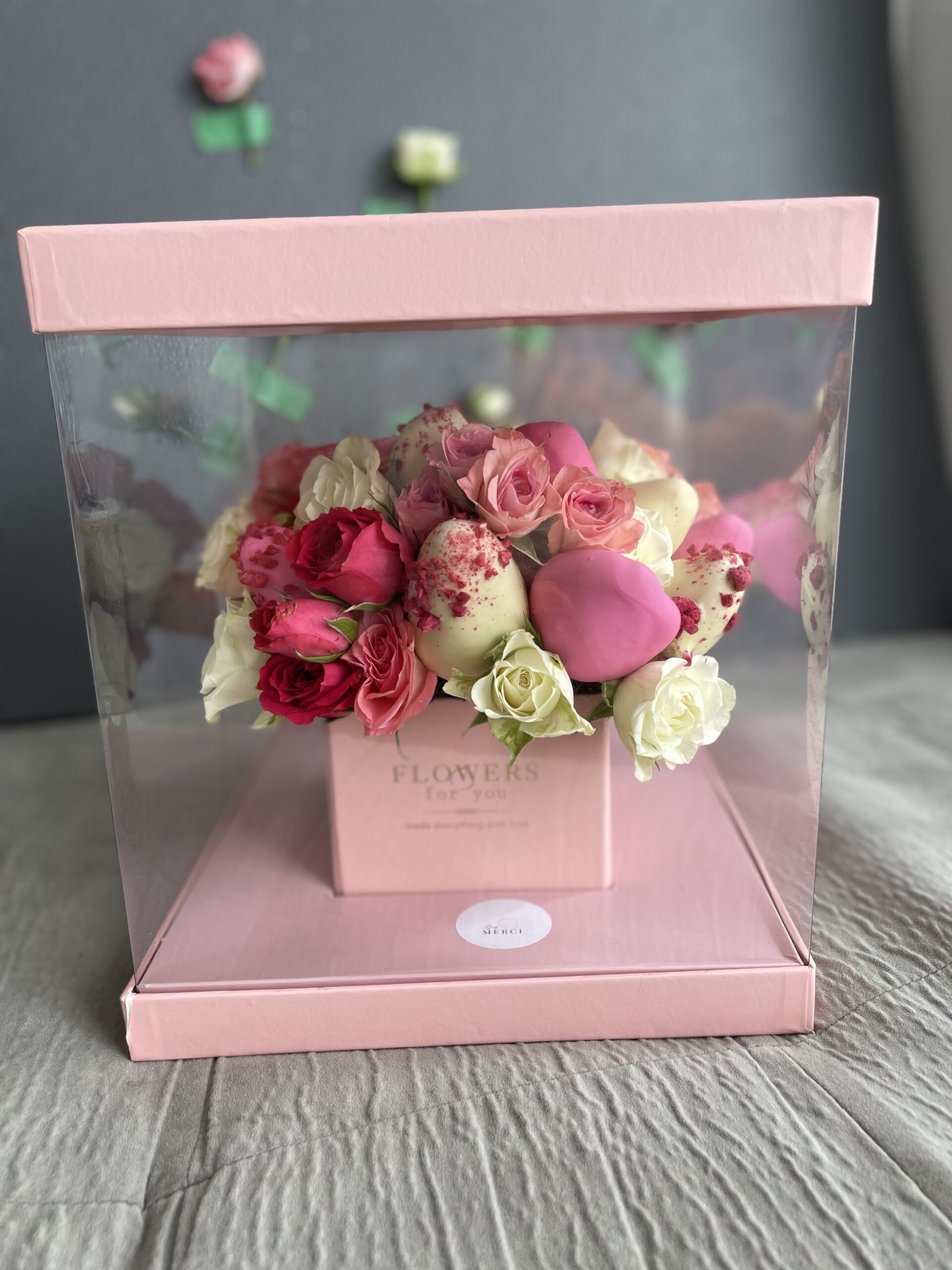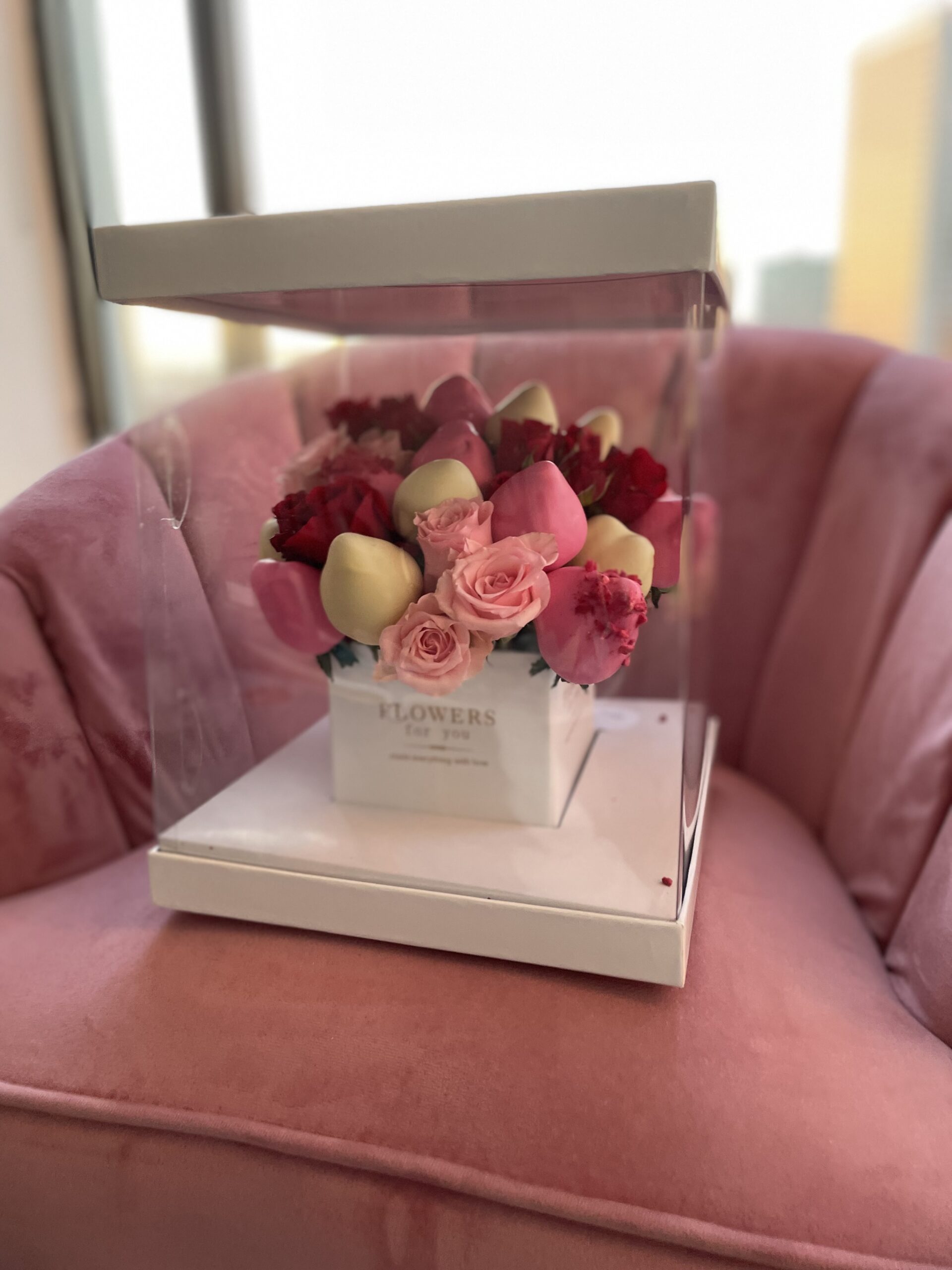 We would like to mention that our strawberry arrangements are not only beautiful but first of all, they are edible bouquets and shall be enjoyed soon. This is the reason, we believe you should tell your loved ones that there is a delivery coming with a surprise and make sure they are at the address for the delivery. You don’t need to tell them what it is, we wouldn’t either, but make sure that they know something delicious is coming. Otherwise, this surprise could be spoiled, as if we take the chocolate strawberry bouquets to their neighbours or have to leave it outside, the recipient might not be there on time to enjoy the box of chocolate strawberries
